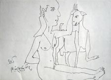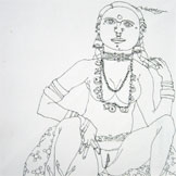 LAXMA GOUD: Born 1940, Laxma Goud has a diploma in Drawing & Painting, Govt. College of Fine Arts & Literature, Hyderabad. He also has a Post Diploma from M.S University, Baroda. He has participated in many important shows, including Ansell Gallery, London, 1973“Figuritive Indian Artists” Warsaw, Budapest;Munich, Germany; Tokyo Print Biennale, all in 1976; Sao Paulo Goethe Institute, Biennale, Brazil, 1977; “India in Print”, Konninklijk Institute Vorde, Amsterdam, 1983 and various other group and solo shows in India and abroad. He lives and works in Hyderabad. Goud is known for his graceful, yet powerful line drawings, etchings and water colors.