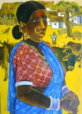 LAXMAN AELAY: Born in 1964 in an artisan's family in India. He acquired a Bachelor's Degree in Fine Arts, after graduating in Commerce. He has participated in numerous group shows in India and abroad. His major breakthrough was when he showed a large number of paintings and drawings in his first solo show in Hyderabad in 1999 at the ICCR Art Gallery. Some of the major group shows in which he has taken part are “TANA” Chicago, USA 1999; Contemporary Deccan - A New Generation of Artists at the Center for Cellular & Molecular Biology, Hyderabad1999. He also took part in the Seventh Annual Group show at Surya Art Gallery, Hyderabad, 2000; Two Man Show at Jehangir Art Gallery, Mumbai, 2001; Tradition to Modernity Fulda, Germany, 2001; Regional Art Exhibition at Cochin (Lalit Kala Academy) 2001; National Art Exhibition at Ahmedabad (Lalit Kala Academy) 2001 |
