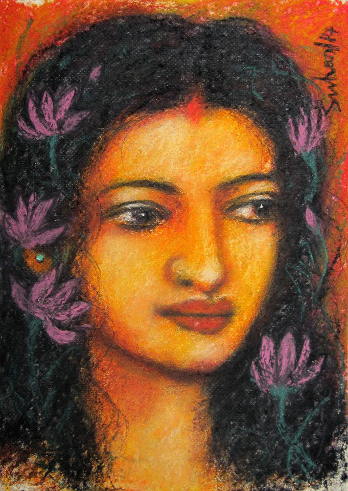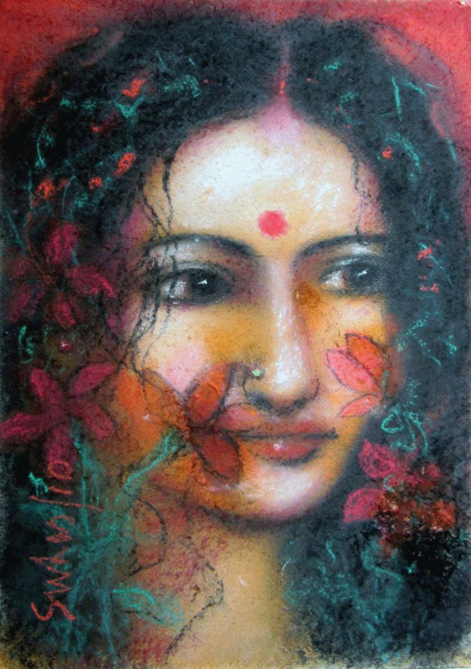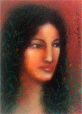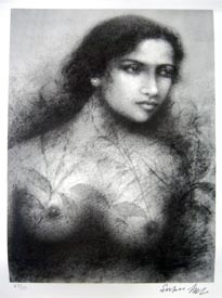 SUHAS ROY: He studied at the Indian College of Arts and Draftsmanship,Calcutta, and under the tutelage of Prof. S.W. Hayter at the Atelier 17 Ecole Superior Des Beaux Arts, Paris. His works have been exhibited allover the world through exhibitions like the Asian Graphic Prints Traveling Exhibition, USA, the Tokyo Print Biennale, Japan, Contemporary Indian Art,Yugoslavia, Romania, Czechoslovakia, Hungry, and Wounds, at the Central Institute Modern Art, New Delhi, and the National Gallery of Modern Art, New Delhi. Roy lives and works in Santiniketan where he is the head of the Department of Painting at Kala Bhavan, Santiniketan. His craftsmanship and consummate skill that ensure that his richly romantic subjects do not touch extreme syrupy and stereotypical portrayals. Instead, their very patent beauty veers towards melancholic grace and elegance. This graceful portrayal of his subjects has much to do with his choice of refinement. The mystical flavour of his works arose from his materials - his crayons, charcoal and brush have sensitivity and interpretations of the 'unknown'. |